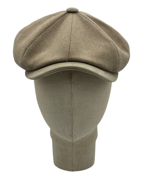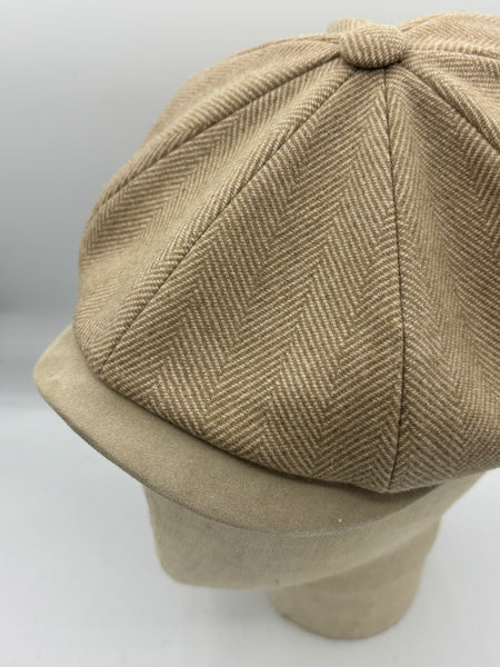 Berretto Kyoto modello otto spicchi in tessuto spinato con visiera e giro testa in pelle scamosciata, foderato.