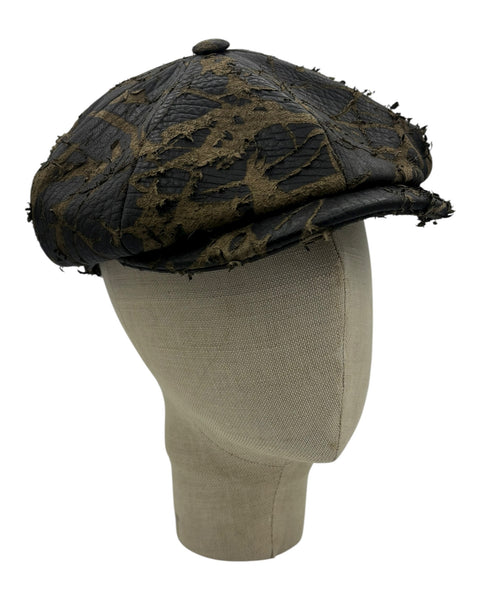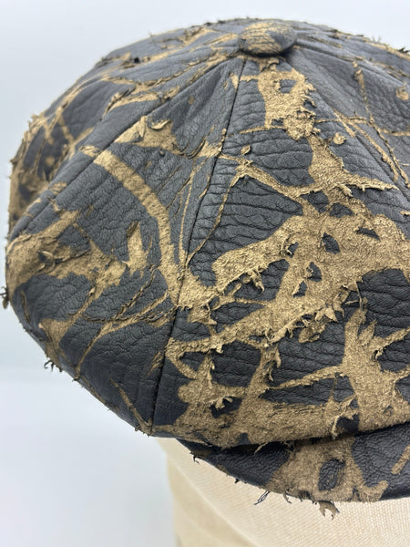 Berretto Kyoto Alfonso d’Este modello otto spicchi in pelle graffiata, foderato.